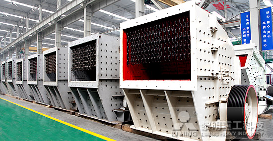 黎明重工研發(fā)生產(chǎn)的反擊式破碎機(jī)具有處理能力強(qiáng),破碎效率高,穩(wěn)定可靠,故障率低,操作維護(hù)便捷,運(yùn)行成本低等優(yōu)點(diǎn)。它選用了大轉(zhuǎn)動慣量的高精度重型轉(zhuǎn)子設(shè)計(jì),配合數(shù)控機(jī)床整體制造工藝,轉(zhuǎn)子運(yùn)行轉(zhuǎn)速大幅提升,處理能力顯著增加;優(yōu)化設(shè)計(jì)的漸開線破碎腔型,破碎效率高,成品粒型好。